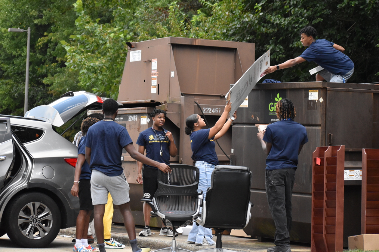 During Honors Day of Service, N.C. A&T Honors College students are transported to civic organizations and nonprofits in and around Greensboro, North Carolina, to volunteer their time and talents. The annual event allows students to get acclimated to campus and the community while serving with fellow Aggies.