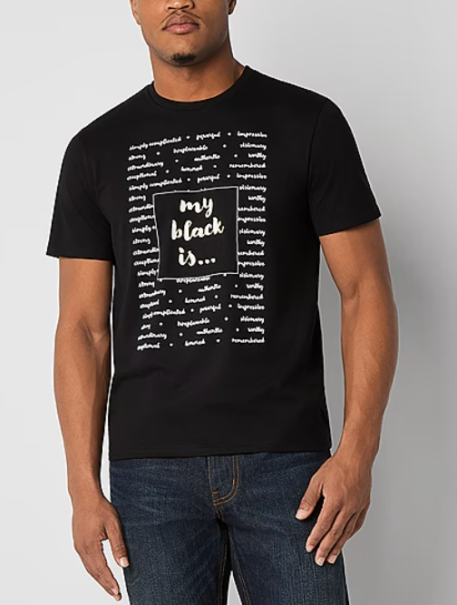 “My design was inspired by the challenge theme,” said Barcliff. “They asked us to visually express what ‘your Black is.’ The shirt celebrates embracing one's identity as a Black individual, featuring words like simply complicated, powerful, impressive, strong, irreplaceable, visionary, extraordinary, authentic, worthy, exceptional, honored and remembered. These words remind us of our worth."